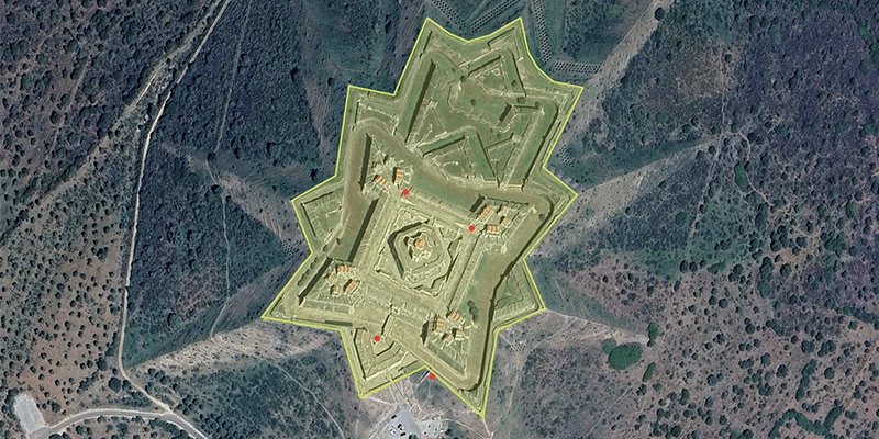 O seu percurso é feito de baluartes, revelins, fossos e caminhos cobertos que fragmentam a leitura do espaço e multiplicam os pontos de defesa. A muralha não se impõe apenas como limite, mas como espessura habitável, onde o caminhar revela mudanças subtis de direção, de cota e de horizonte. Entre a cidade e a paisagem, estabelece-se uma zona intermédia de vigilância e transição.