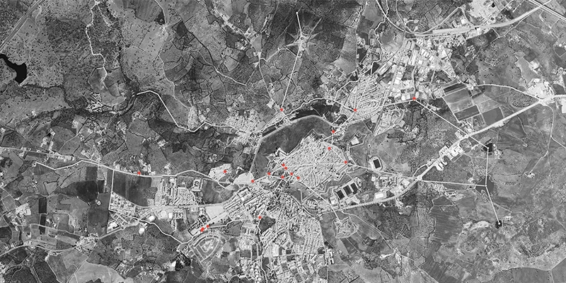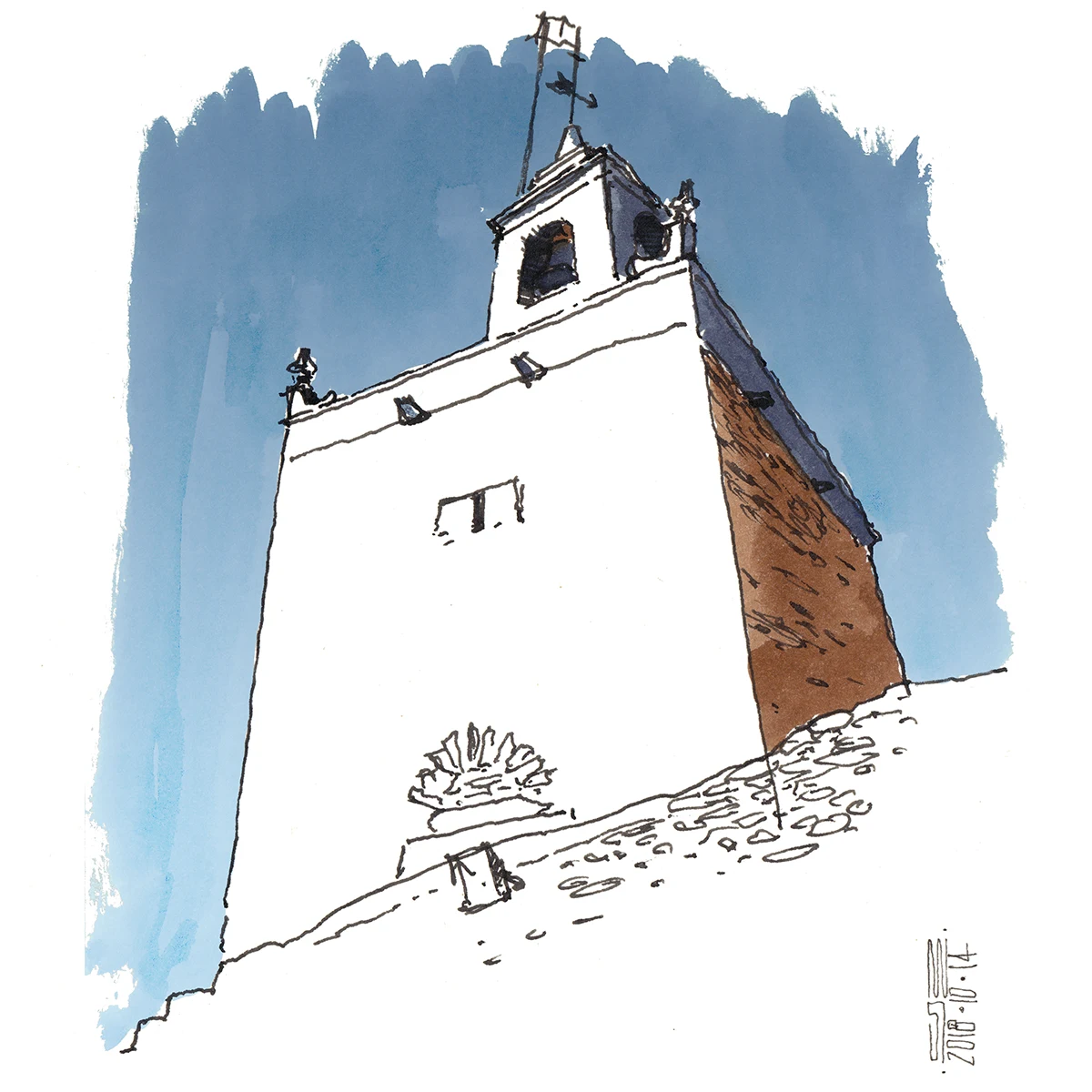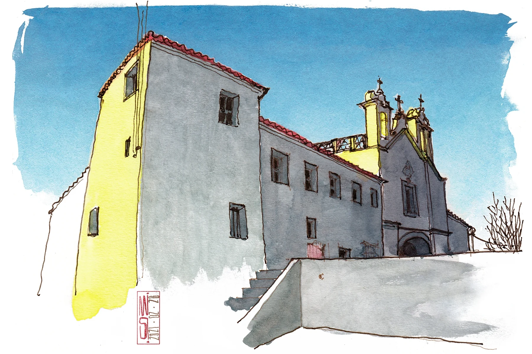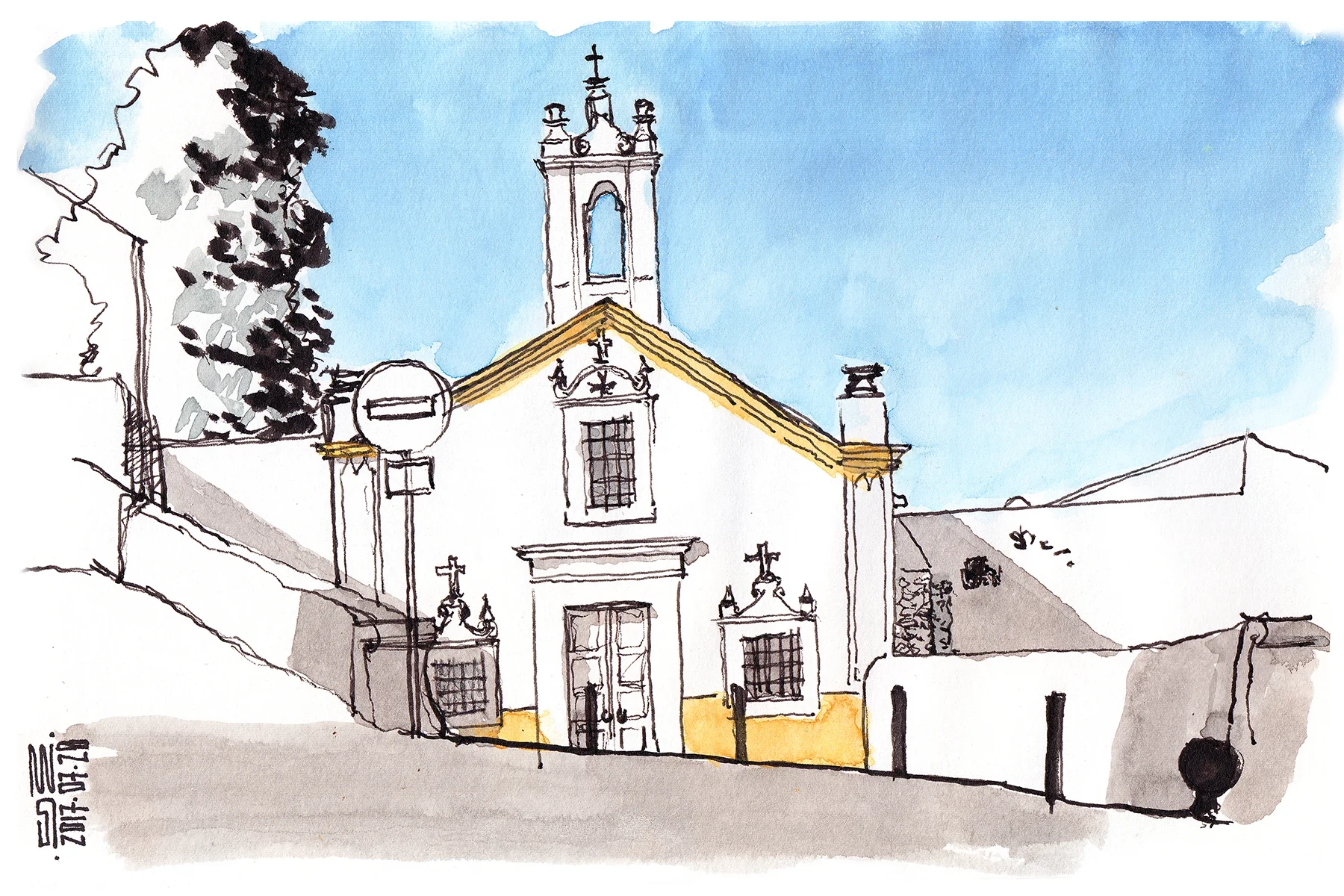 Pelas freguesias, o território abre-se e respira noutro compasso. A malha urbana dissolve-se em núcleos pequenos, onde a construção se encosta ao campo e a paisagem entra pelas ruas sem pedir licença. As casas são mais baixas, os volumes simples, muitas vezes marcados pela lógica da necessidade: anexos acrescentados, muros, quintais que prolongam a vida doméstica para fora. Aqui, o desenho confronta-se com a horizontalidade, com o peso do céu e a presença constante do solo — caminhos de terra, árvores isoladas que servem de orientação. Cada freguesia guarda uma relação própria com o tempo: silos, fontes, igrejas modestas, ruínas que não se explicam, apenas permanecem. Desenhar estes lugares é aceitar a economia do gesto, trabalhar com o essencial, deixando que o traço registe a convivência silenciosa entre o construído e o espaço aberto que o sustenta. Terrugem, Vila Boim, Santa Eulália, São Vicente e Ventosa surgem como variações de um mesmo território, cada uma com a sua escala e densidade próprias, enquanto Caia, São Pedro e Alcáçova, já no limiar da cidade, fazem a transição entre o tecido histórico e a abertura do campo. São lugares onde a arquitectura não se impõe, mas acompanha: igrejas discretas, escolas antigas, depósitos de água, muros longos que conduzem o olhar e o passo. O desenho atravessa estas freguesias como quem lê um mesmo texto em diferentes caligrafias, reconhecendo continuidades e pequenas rupturas, sempre sob a mesma luz ampla do Alentejo.