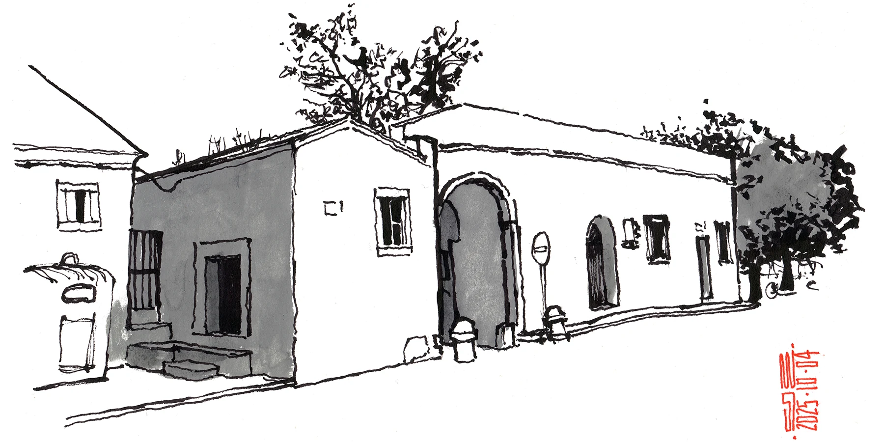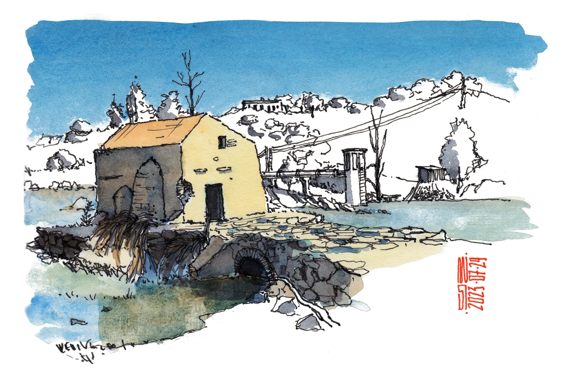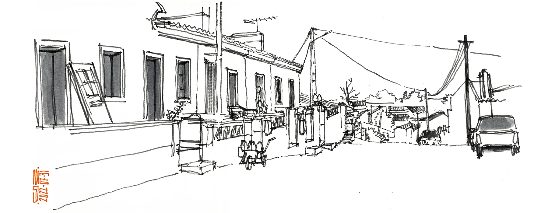 Nos meus desenhos, o lugar revela-se com uma clareza interior: não como cenário, mas como presença; um território onde o eco do passado se mistura com o rumor do rio, e onde cada visitante encontra, por instantes, um espelho onde escutar aquilo que só se ouve na lentidão.