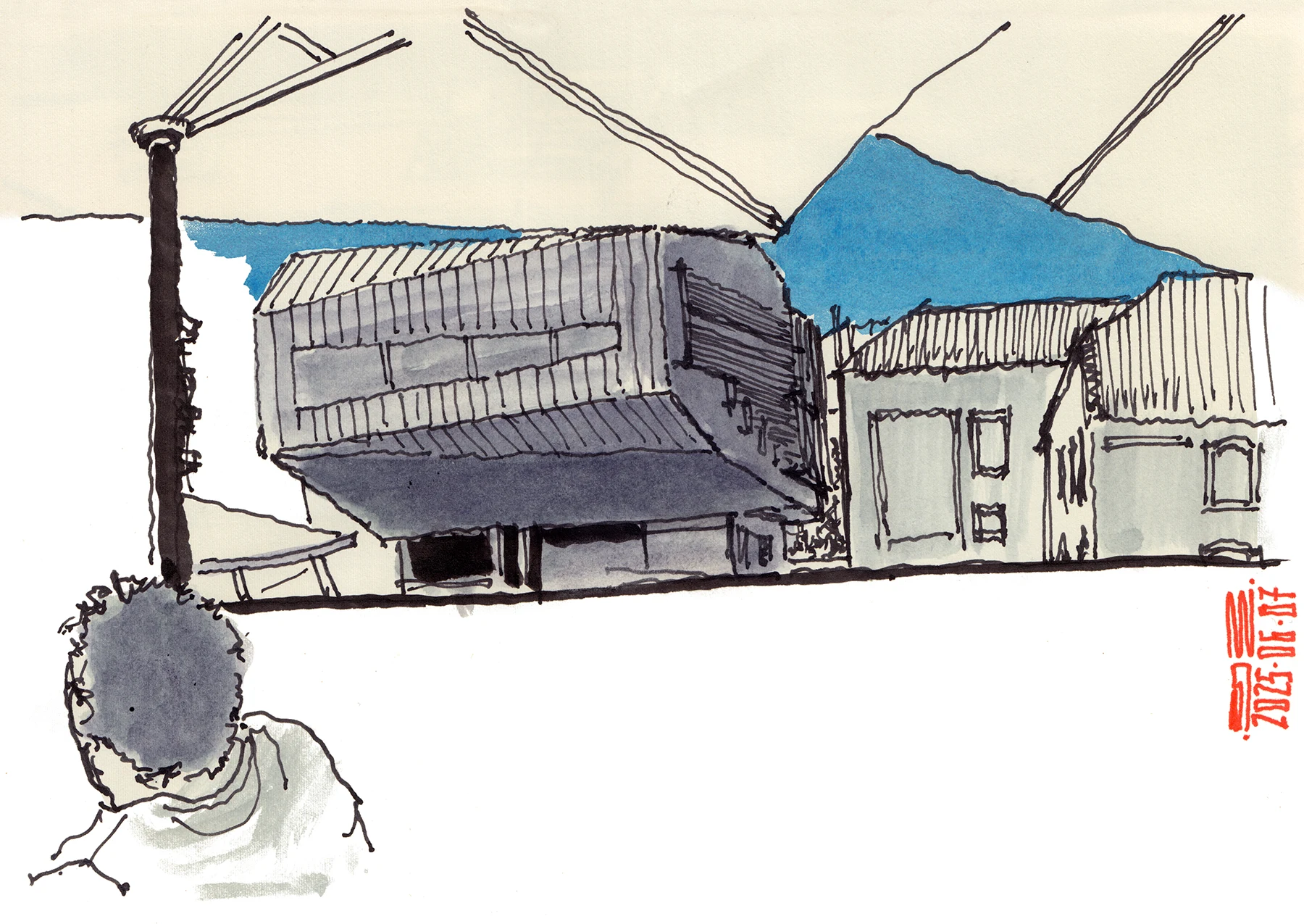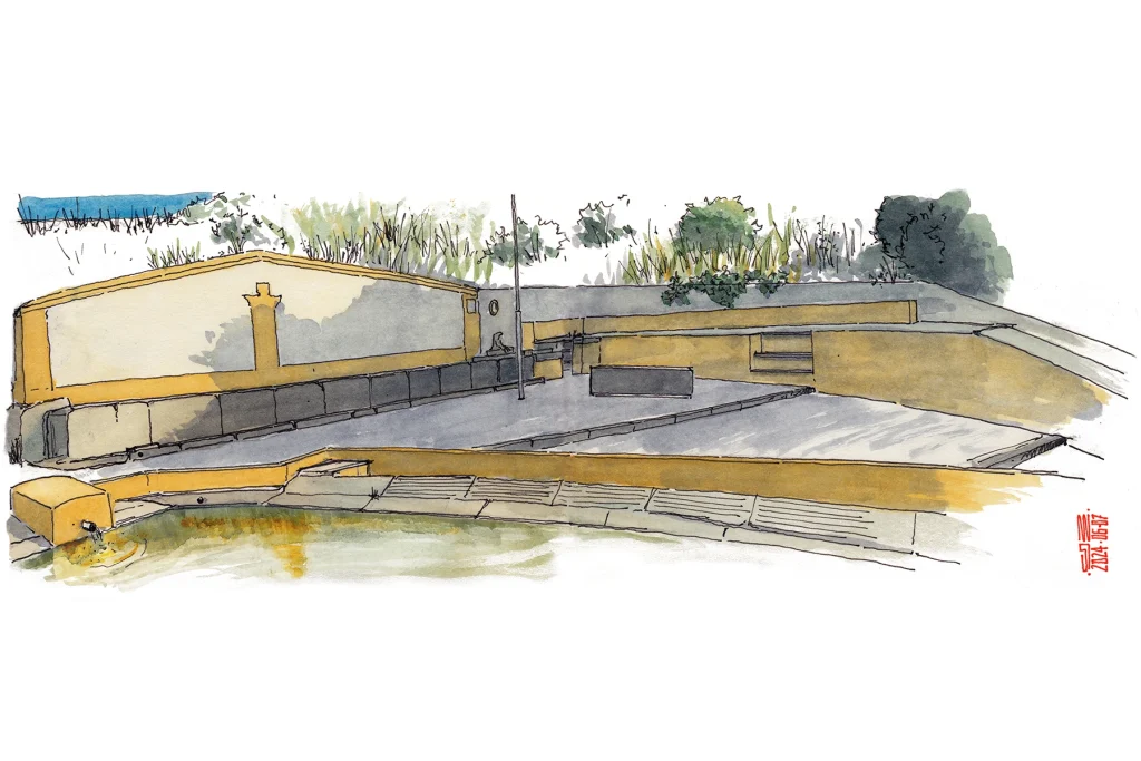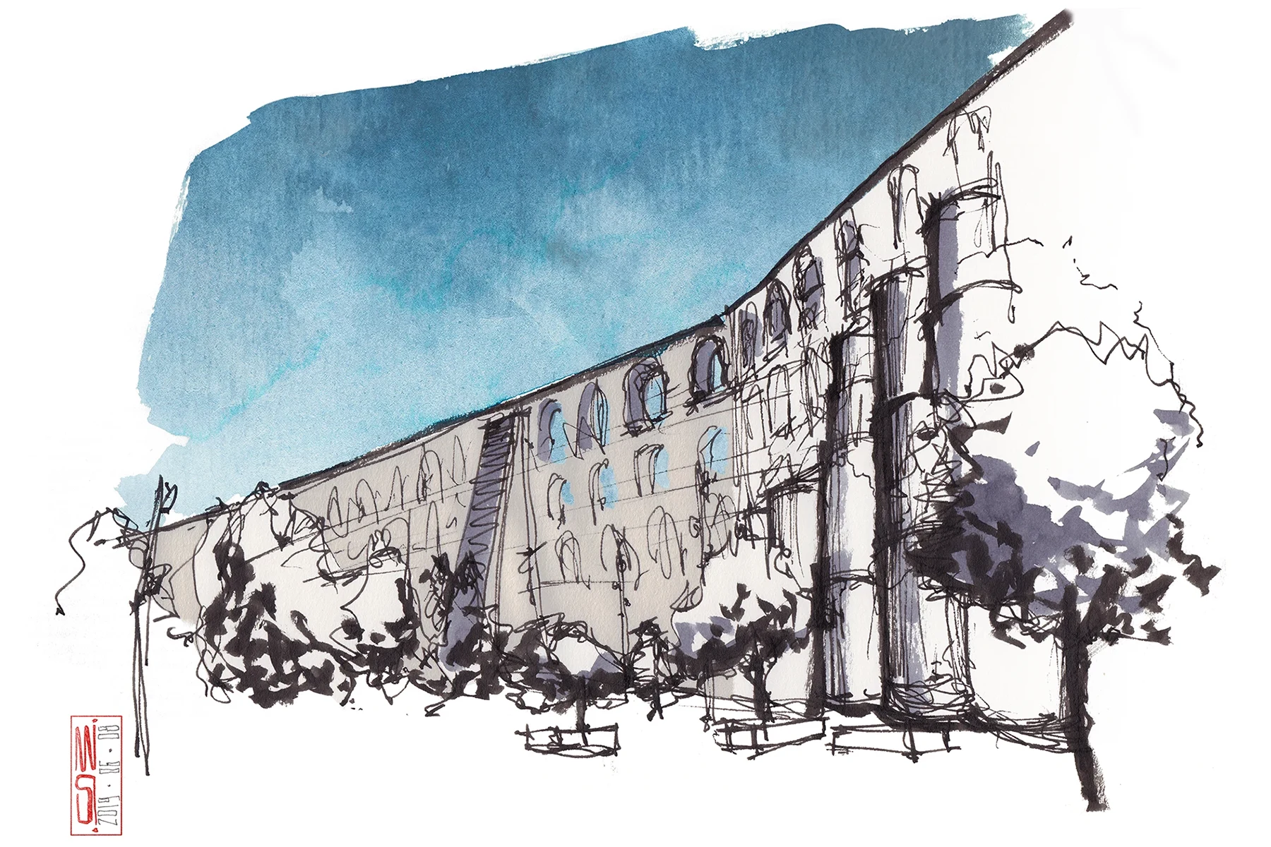 Nos meus desenhos, o lugar revela-se com uma clareza interior: não como cenário, mas como presença; um território onde o eco do passado se mistura com o rumor do rio, e onde cada visitante encontra, por instantes, um espelho onde escutar aquilo que só se ouve na lentidão.