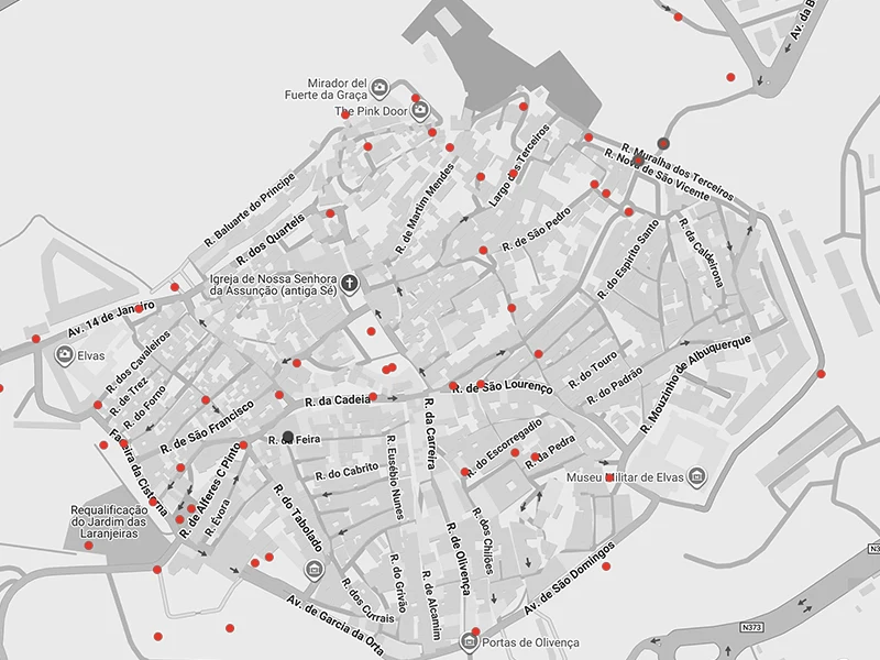 As igrejas de Elvas distribuem-se entre o interior da cerca histórica e a sua periferia, acompanhando o crescimento da cidade para além das muralhas.