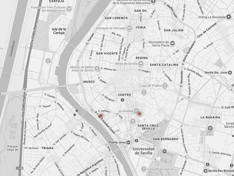 A muralha almóada do séc. XII, erguida para proteger uma cidade próspera junto ao Guadalquivir, delimitava um recinto vivo e permeável, pontuado por portas como a de Jerez, a de Carmona ou a de la Macarena. Desses limites defensivos restam troços dispersos, torres sobreviventes e a memória inscrita na forma curva de certos arruamentos, onde a cidade ainda parece dobrar-se sobre si mesma.