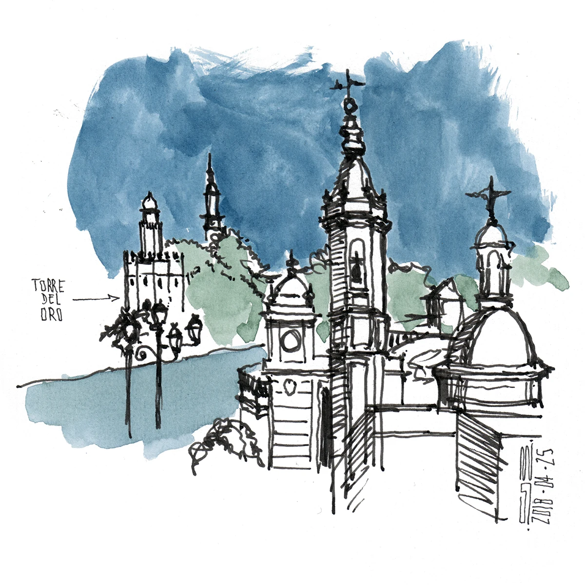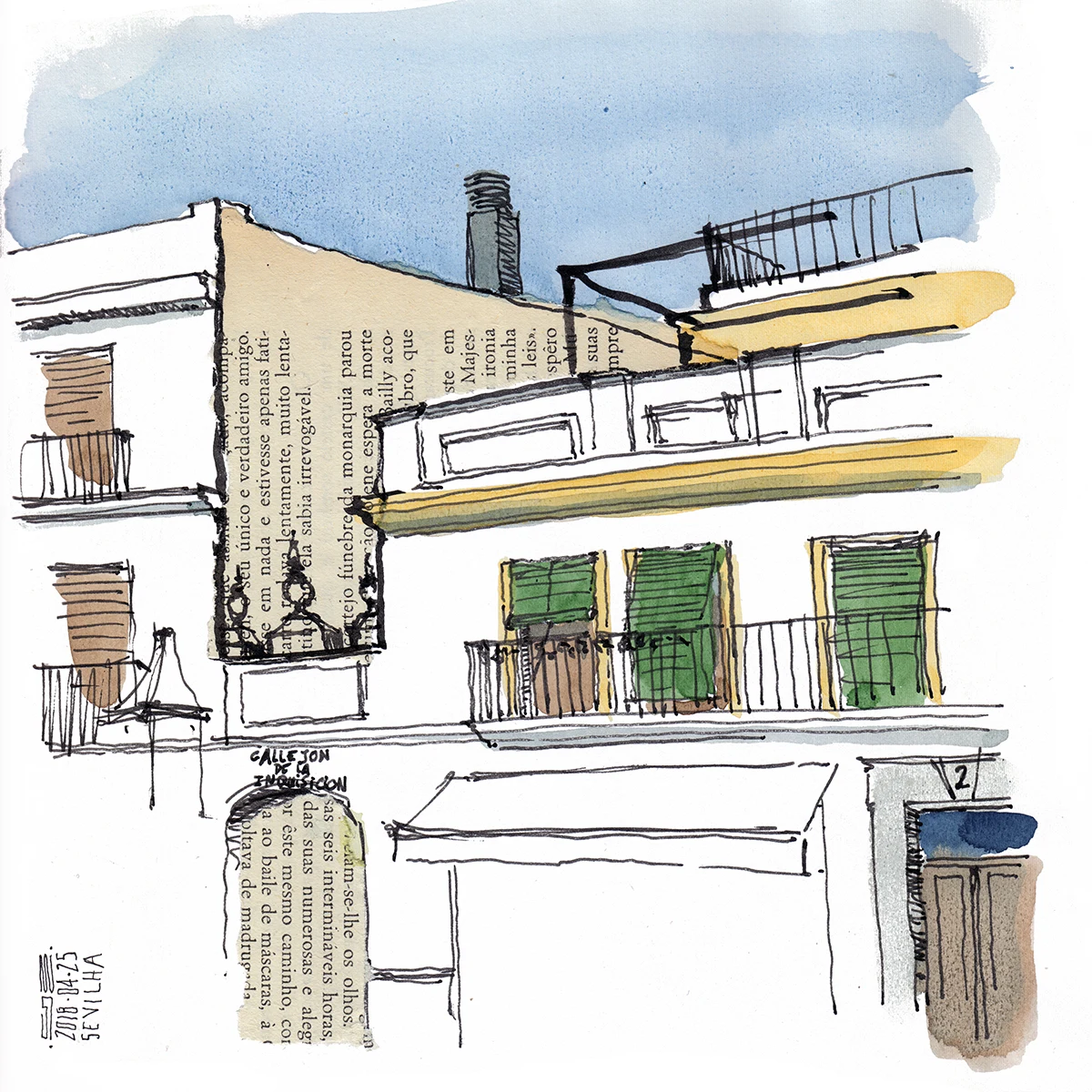 Desenhar Sevilha é seguir esses vestígios: a muralha que se transforma em fachada, o arco que já não é porta, o pátio entrevisto por uma cancela entreaberta. É aceitar que a cidade não se oferece por inteiro, mas em fragmentos — e que é nesses fragmentos, entre o visível e o oculto, que Sevilha continua a acontecer.